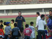 ハーフタイムの出し物として、中川家の兄弟が2チームに分かれてそれぞれに子供達を率い、タックル&ジクザグランリレーをやってました。アンカーとなった中川家のお兄ちゃんが、お約束のようにタックルに行って逆に弾き飛ばされてました(^^;