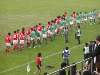 トップリーグの前座として行われました、高校世代のユースチームの中で、15人制ラグビーができる環境にある両チームの交流試合です。スタンドでは単なる練習試合と思っている人が多かったようですが、選手にとっては貴重な試合の機会だったそうで。