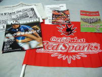 ・キューデンヴォルテクスのテントでもらったパンフレットは裏が応援シートになってました。ジャパンの「Believe」よろしく、「九州魂」と。青地に白で太々と。ん、青地に白? ということは、ファーストジャージでの試合の時は、合わせてエンジ地に白文字なんだろうか?