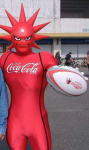 ・コーラのキャラクター、スパーキーはハーフタイムにはグランドに出てきてボールの投げ入れなどをしてましたが、