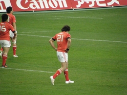 最後の最後、ヤマハ陣ほぼ正面、40メートル弱の距離で得たPG。ホーンが鳴ってたので、どうなるにせよ、ラストプレーです。思わず今日のピーターなら決めてくれる、勝った! と思ったんですが、残り3分でCTBジェーソン・カワウと交代して下がってたんでした。そこでキッカーには、CTB山本大介。去年まではいい日は神がかり的なキック能力を見せてくれてたんですが、今年は正直キックは不調です。それがいきなりこんな大事なキックで大丈夫かと心配しながら見てたんですが、ダメでした……。