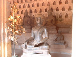 その後、道を挟んでシーサケット博物館の南側にあるホーパケオ博物館が夕方まで開館していることに気付き、足を伸ばした。シーサケット博物館よりは広いけど、それでもやっぱり小さかった。この二つの博物館を見て一番印象に残ったのは、タイなどの外敵の侵略によって打ち壊された仏像の多さだった。破壊されたまま、無造作に積み上げられた仏像を見ていると、なんとも言えない気分になってくる。