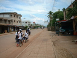 チャムパサックは、昔は地域の中心都市として繁栄していたらしい。世界遺産のワット・プーを抱えるくらいだから、かつてはかなりのものだったと考えられるのだが、実際に町中を走ってみるとごく普通の田舎町で、全然ぴんと来ない。メインストリート沿いに細長く町が続いてるのがその名残なのだろうか。