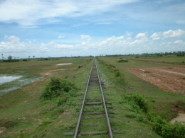 列車は茫漠たる平野をゆっくりと進んでいく。途中の駅も、ホームなどあってなきが如しなところばかりだ。駅名標はあるのだが、クメール語表記なので、さっぱり分からない。走っていると、そこかしこに支線跡を見かける。昔は鉄道ももっと盛んだったんだろうなあ。