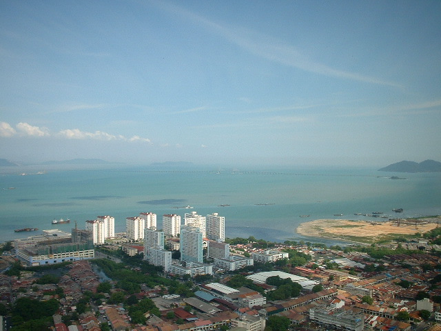 改めて驚いた。海の色が違う。青くないんだ。エメラルドグリーンと言うのが一番近いか。南国を感じる色だ。本当にこんな色をしているとは知らなかった。南方の海上には、総延長13キロもあるペナン大橋が海原を貫いて走っている。あの橋を車で走ったら、さぞかし気持ちいいだろうなあ。