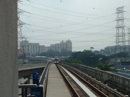 そして鉄道。スターLRTは途中で路線が二つに分かれているが、たまたま乗ったのはかなり長く伸びている方、SRI Petaling行きだった。路線が分岐したあとは線路が高架でなくなり、昔から鉄道があったのだろうと思える車窓風景になった。線路と町並みがしっくり融和している。大都市近郊の住宅街の風景だなと思いつつ一時間ほど乗っていたら、終着駅の二つ前から再度高架に。このあたりから住宅の並びも新しくなった。しばらくKTM(マレー鉄道の近郊路線)と並行して走っていたが、やがて高架の高速道路のさらに上を豪快にまたぐ大高架が現れた。駅間距離も相当開き、地面と高架が交互に現れる、曲がりくねったジェットコースターのような線路になった。こんなダイナミックで面白い路線だとは思わなかった。