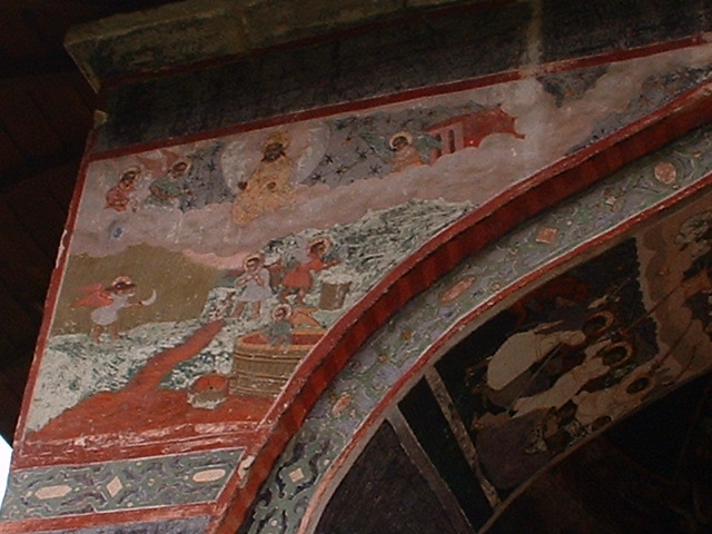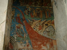 途中でおばあちゃんが教会の管理人さんを呼んできて、鍵を開けて中に入れてくれた。関係者がいると大違いだなあ。英国人の旦那の言うことには、ここの中のペイントは赤を多用して地獄を表現していて、他の教会とは違うんだ、とのこと。確かにグロードの教会は普通にキリストとかだったなあ。ここでも中は写真撮影禁止だそうだ。残念。
