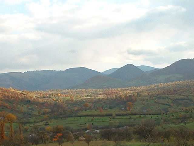とうに村域を外れ、民家はなくなっている。周囲は見渡す限りの牧草地だ。だから見晴らしもよく、緑が目に心地いい。目指す地点に到着した。うん、このパノラマは目に快い。頑張って歩いた値打ちはある。いい眺めだ。ルーマニアの区切り、締めとしては最高の景色だろう。