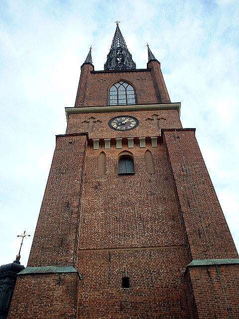 一時期王宮としても使われたというヴランゲル宮殿を見てから、この島の中心・リッダーホルム教会をめざす。ストックホルムで最も古い教会の一つで、尖塔の先が、中身が詰まっていないスタイルなのはここだけとのことで、ずっと気になっていたのだ。おお、この高さと美しさは見事だ。珍しく角度を変えて二枚。