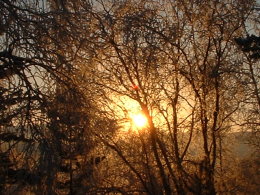 気がつくと、太陽がまさに山の端に沈んでいこうとしている。まだ12時半なのに。この時期ならではだけど、本当に昼が短いなあ。